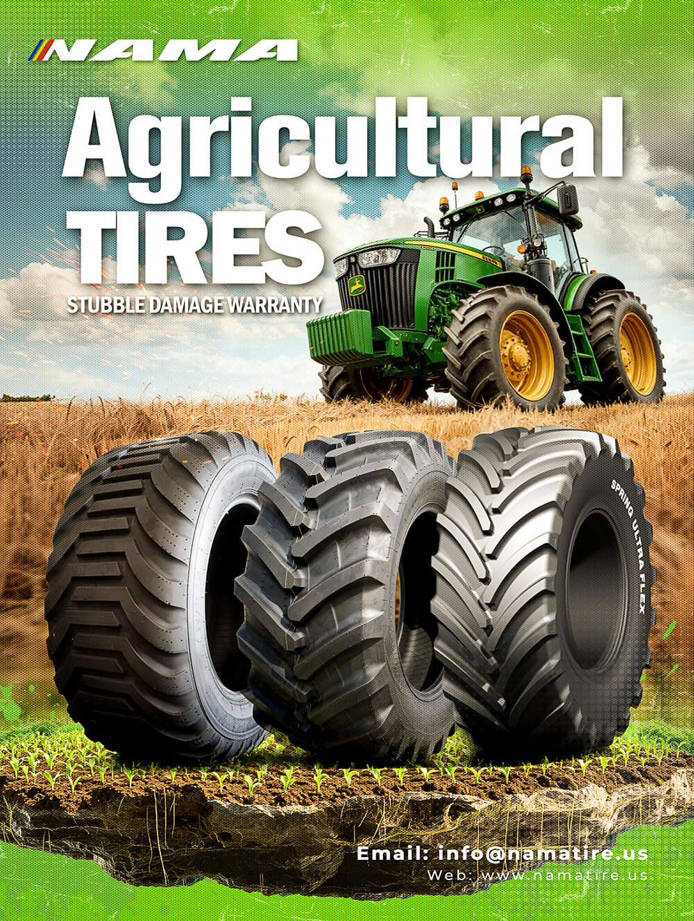NAMA Tires provides durable, high-performance agricultural tires designed to meet the real-world demands of modern farming. With a focus on reliability and aftermarket support, NAMA helps farmers protect their equipment and maximize productivity.